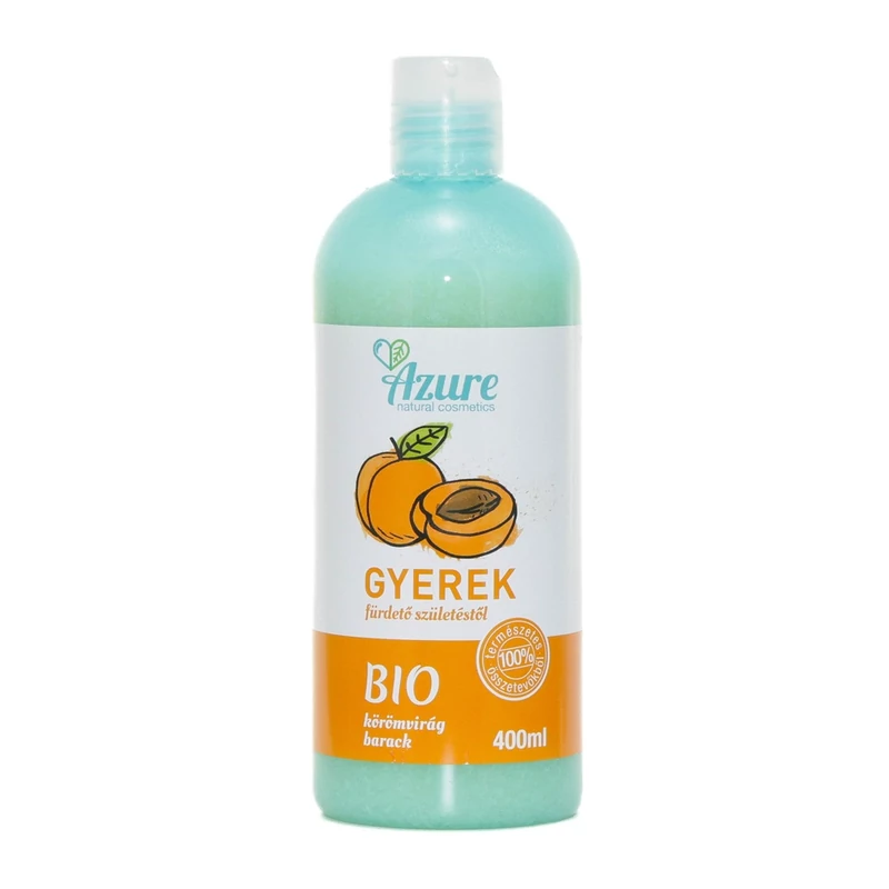 Az Azure barackos baba fürdető bio barackolaj és bio körömvirág hozzáadásával készült, így már fürdés közben védi és hidratálja a baba bőrét, így egyéb testápoló vagy olaj alkalmazása nem szükséges. Az Azure jellegzetessége, hogy a megszokottnál jóval több olajat tartalmaz, ezért érdemes a bőrre kenni és a fürdővízzel leöblíteni, hogy minél több értékes hatóanyag a bőrre kerüljön.