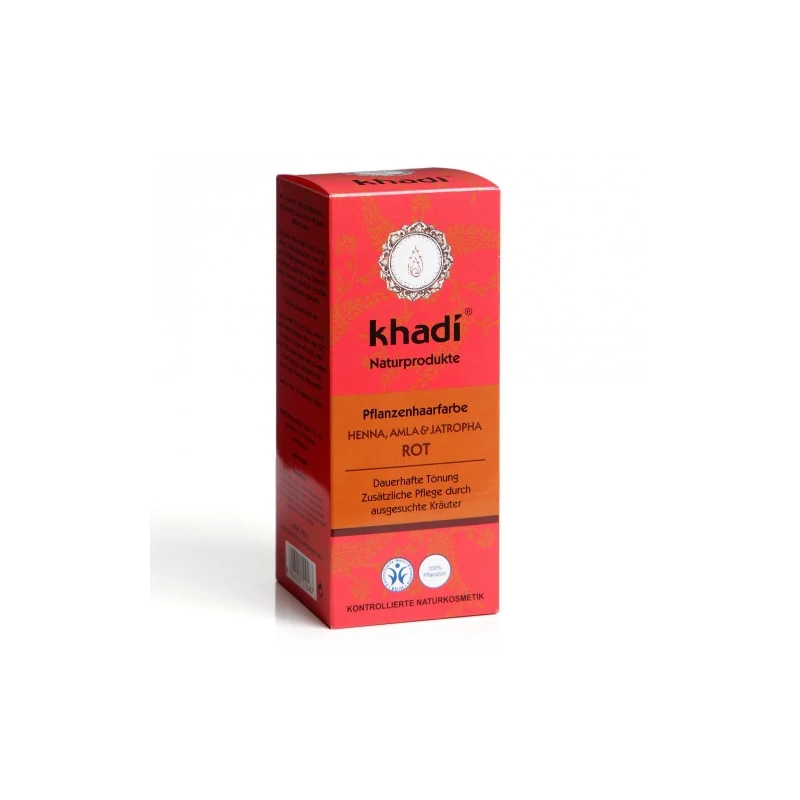 100%-ban növényi összetételű termék. Hosszantartó szín, egyedülálló ápolás, tartás és fény egyetlen lépésben. A hatóidőtől függően világos hajszín esetében erősebb narancs és sötétebb vörös közötti eredményre lehet számítani, a sötét hajnak vöröses fényt ad. Az ősz hajat is egyetlen lépésben befedi. Ősz, szőke vagy szőkített haj kétlépéses színezése esetén az előfestéshez kiválóan alkalmas. Az amla és a jatropha növényeknek köszönhetően erőteljesebb színeredményt kapunk, emellett intenzívebb ápoló hatás is érvényesül. A Khadi növényi hajfestékek eredménye nagymértékben függ a kiindulási hajszíntől és a haj szerkezetétől, a hatóidőtől és az alkalmazott hőmérséklettől.